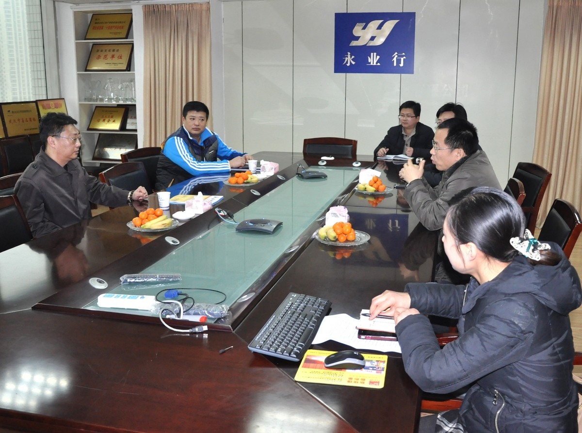 近日,孝感市政协领导莅临永业行孝感分部视察 2014-01-16 近日,孝感市政协常务副主席喻楚林及副主席周良斌,市政协副主席、民建市委主委陈鸿杰,市委统战部副部长、市政协人口资源环境和城市建设委员会主任程建华,市政协人口资源环境和城市建设委员会副主任高国平、社会和法制委员会副主任冯艳等莅临永业行孝感分部视察并指导工作。 公司总裁潘世炳、副总裁肖锋、孝感分部总经理张立胜热情接待了喻主席一行。视察期间,喻主席一行听取了潘总对永业行发展历程、业务范围、公司规模、技术力量、行业地位、近期业绩、长远目标等基本情况。喻主席等对永业行2013年取得的业绩表示祝贺,对孝感分部积极参政议政予以了充分肯定,并对永业行的未来寄予厚望。此外,喻主席等对永业行的发 MORE